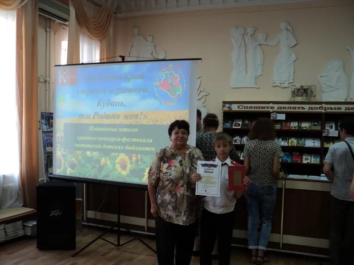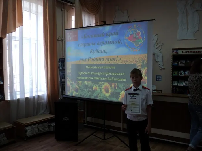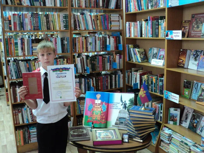В финал конкурса вышло 18 юных читателей края. Среди них читатель нашей Старонижестеблиевской библиотеки Крутофал Богдан (ученик 4а класса МБОУ СОШ№15).