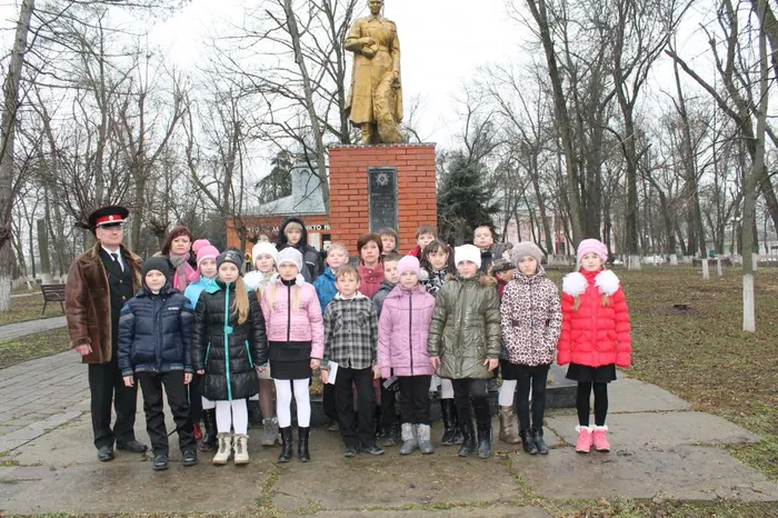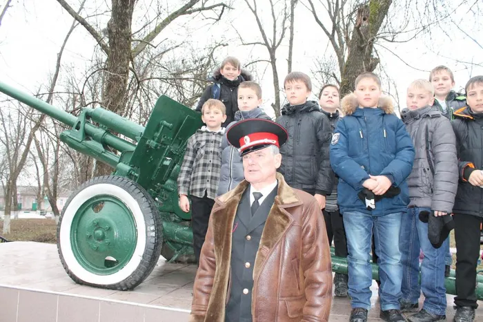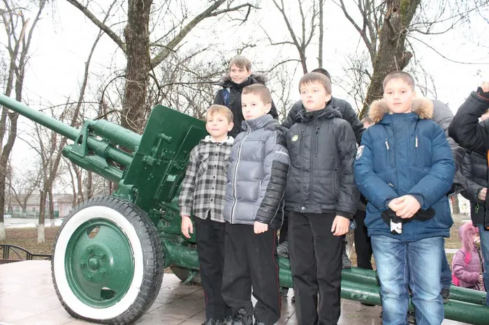 Дети возложили цветы к Пушке-памятнику, Пушке-легенде, которая стоит на постаменте в станичном парке Старонижестеблиевской.
