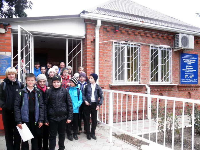 Ребята школы СОШ МБОУ №15 состоят в клубе "Кем быть? Каким быть?" . Старонижестеблиевская детская библиотека с ребятами 14 октября совершили экскурсию в нотариальную контору. Узнали, что профессия нотариуса очень древняя, восходит к Древнему Риму, а в России нотариусы появились в 15 веке. Всем очень понравился рассказ нотариуса Медведковой Евгении Валентиновны, ребята задавали интересующие их вопросы. Встреча получилась насыщенной, дети на память получили брошюры.