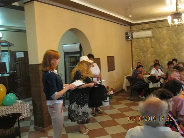 И, по сложившейся традиции, со своими пожеланиями и поздравлениями к собравшимся обратилась директор библиотеки, которая от всей души поблагодарила за тепло сердец, за отданные работе силы, за опыт, которым пожилые люди делятся с молодым поколением, со своими детьми и внуками – то есть с нами. В гости на праздник пожаловало Библиоприведение. В Год Литературы для гостей провело шуточную Литературную викторину. Также пожилых людей приехал поздравить «Сеньор Итальяно». Да не с пустыми руками, а с виноградом и макаронами. Сами пожилые люди с удовольствием участвовали в конкурсах: рассказывали о себе, вспоминали интересные случаи из жизни.