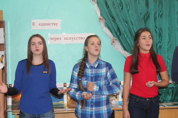 МКУК «Старонижестеблиевская сельская библиотека» пригласила своих хороших друзей Детскую школу искусств. «К единству через искусство!» В ходе этого мероприятия ребята познакомились с различными жанрами изобразительного искусства, составляли жанровые картины из пазлов, расширили свой кругозор, ответив на вопросы викторины, узнавали картины и художников. В заключении рассказали, чем они занимаются в школе искусств, поделились успехами за I четверть. Хоровое отделение – старшая группа (преподаватель Сокол Г. А.) исполнили кубанские песни.